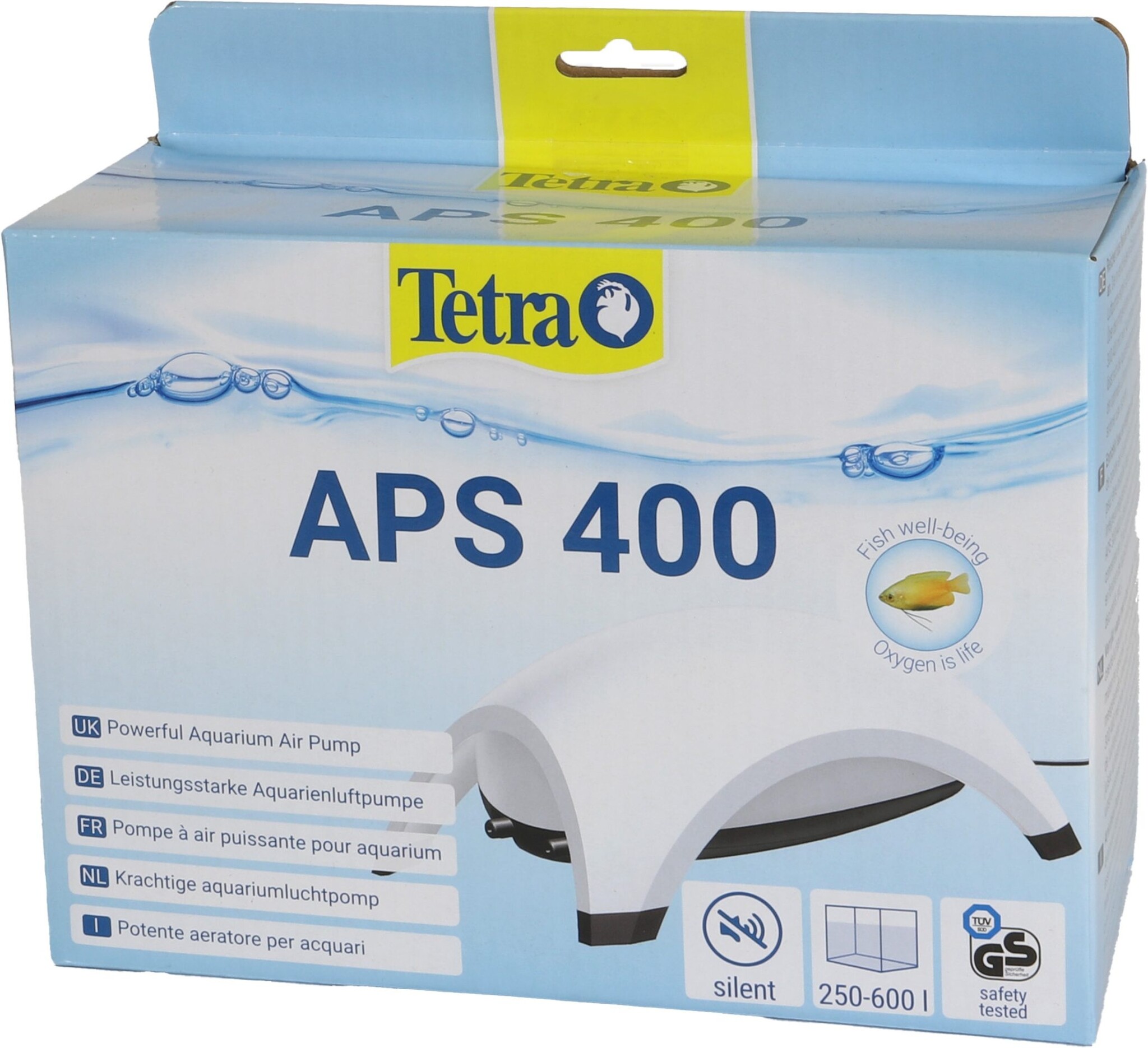De Tetra luchtpomp APS 400 met 2 uitgangen staat bekend om zijn aangename loopvloeiendheid door geluidsabsorberende kamers. Zeer stille werking dankzij innovatief pompontwerp, sterke behuizingswand en speciale, trilling absorberende rubberen voetjes