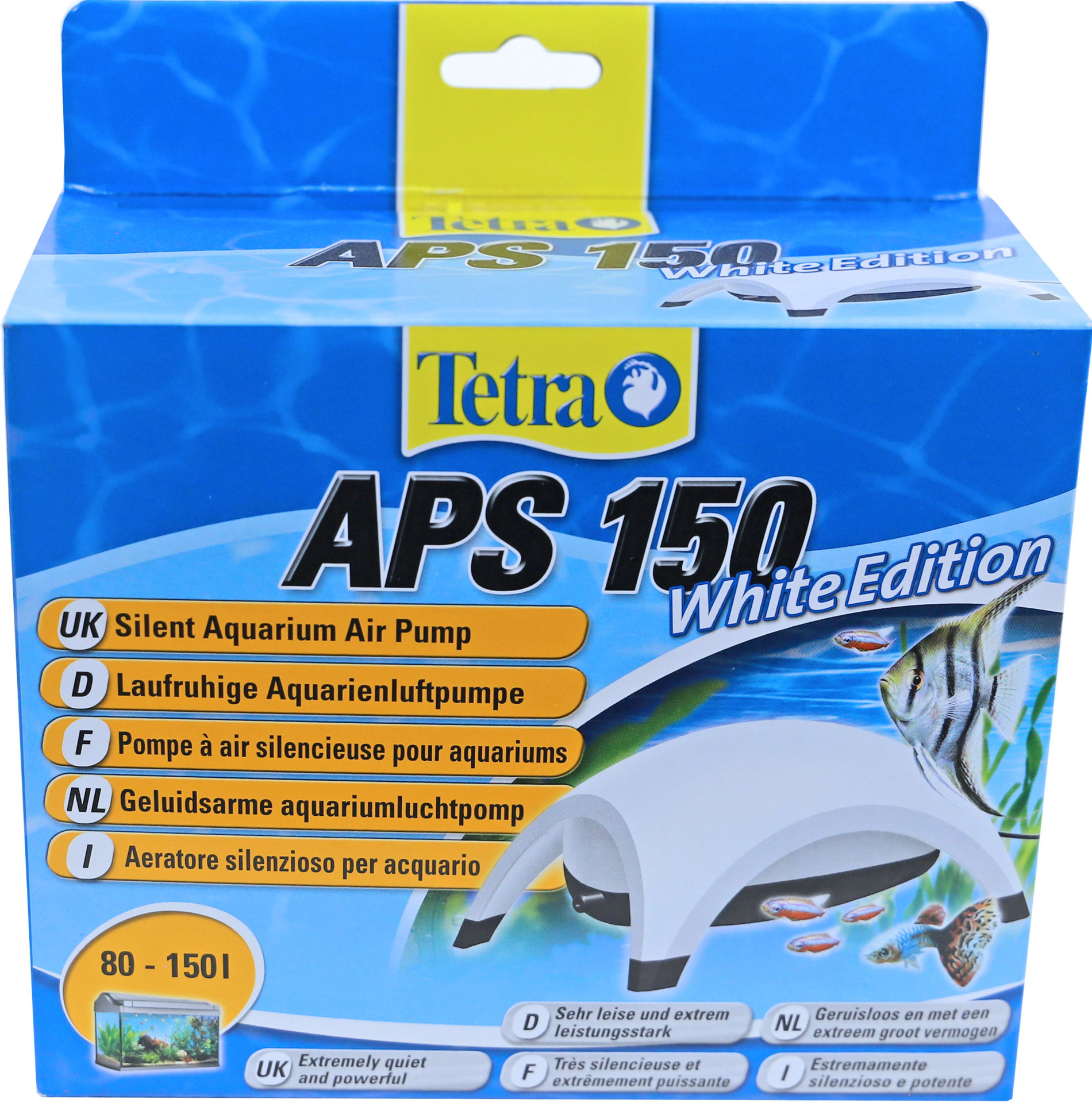De Tetra luchtpomp APS 150 staat bekend om zijn aangename loopvloeiendheid door geluidsabsorberende kamers. Zeer stille werking dankzij innovatief pompontwerp, sterke behuizingswand en speciale, trilling absorberende rubberen voetjes