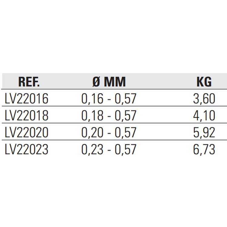Hoogwaardige copolymeer monofilament lijnspoelen van 220 meter lang. Bestaande uit 200 meter fijne diameter, perfect gekalibreerd nylon, eindigend in een robuuste 0,57 mm conische leider.