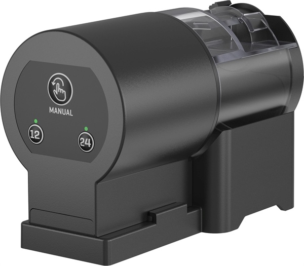 HS aqua Automatic Fish Feeder is een voederautomaat geschikt voor granulaat, pellets en vlokkenvoer. Hij is eenvoudig in gebruik en kan ingesteld worden op maximaal 2 voedingen per dag. Ook de hoeveelheid voer kan ingesteld worden. De voederautomaat wordt geleverd met een houder voor aquaria met afdekkap en een houder voor open aquaria tot 15 mm glasdikte.