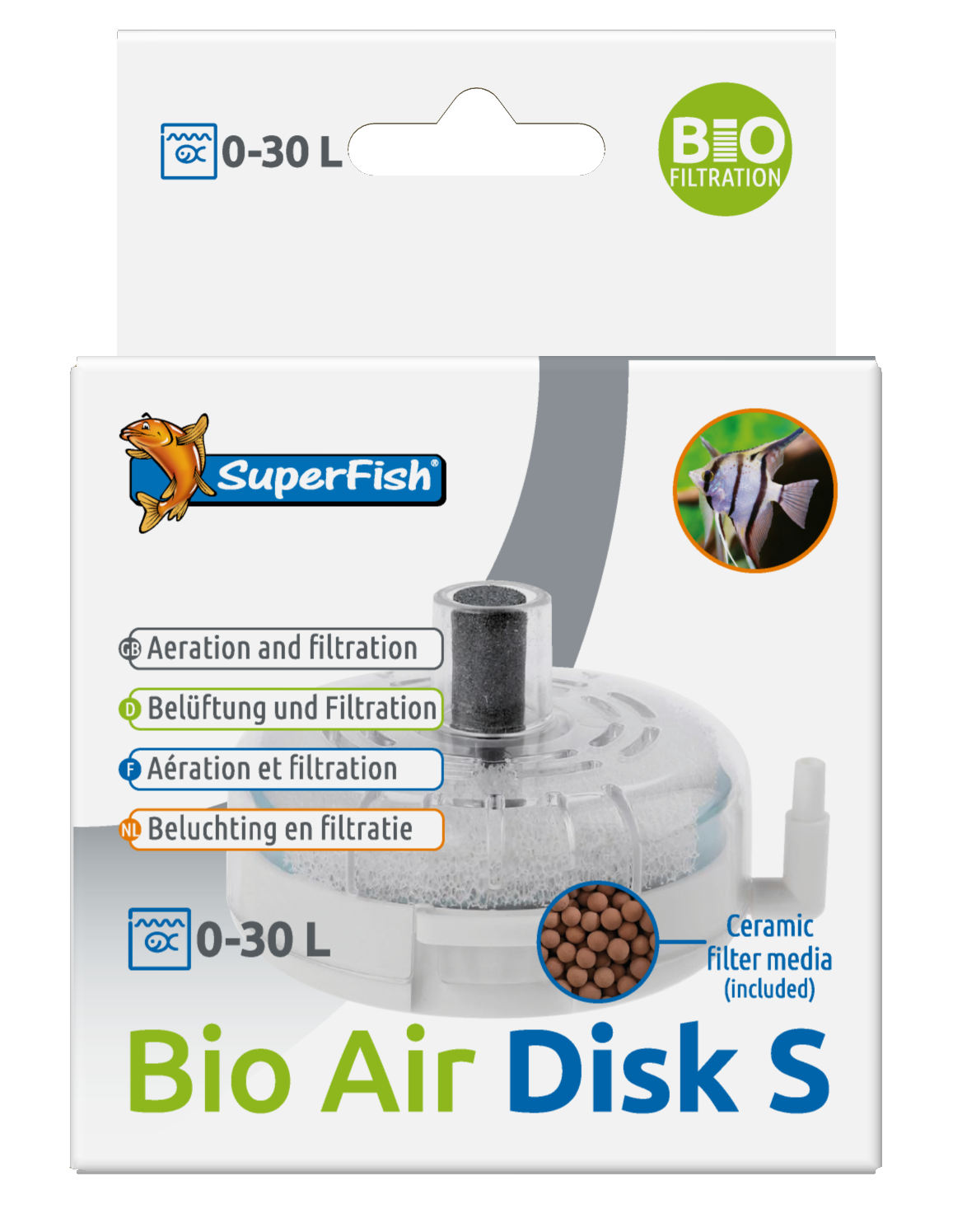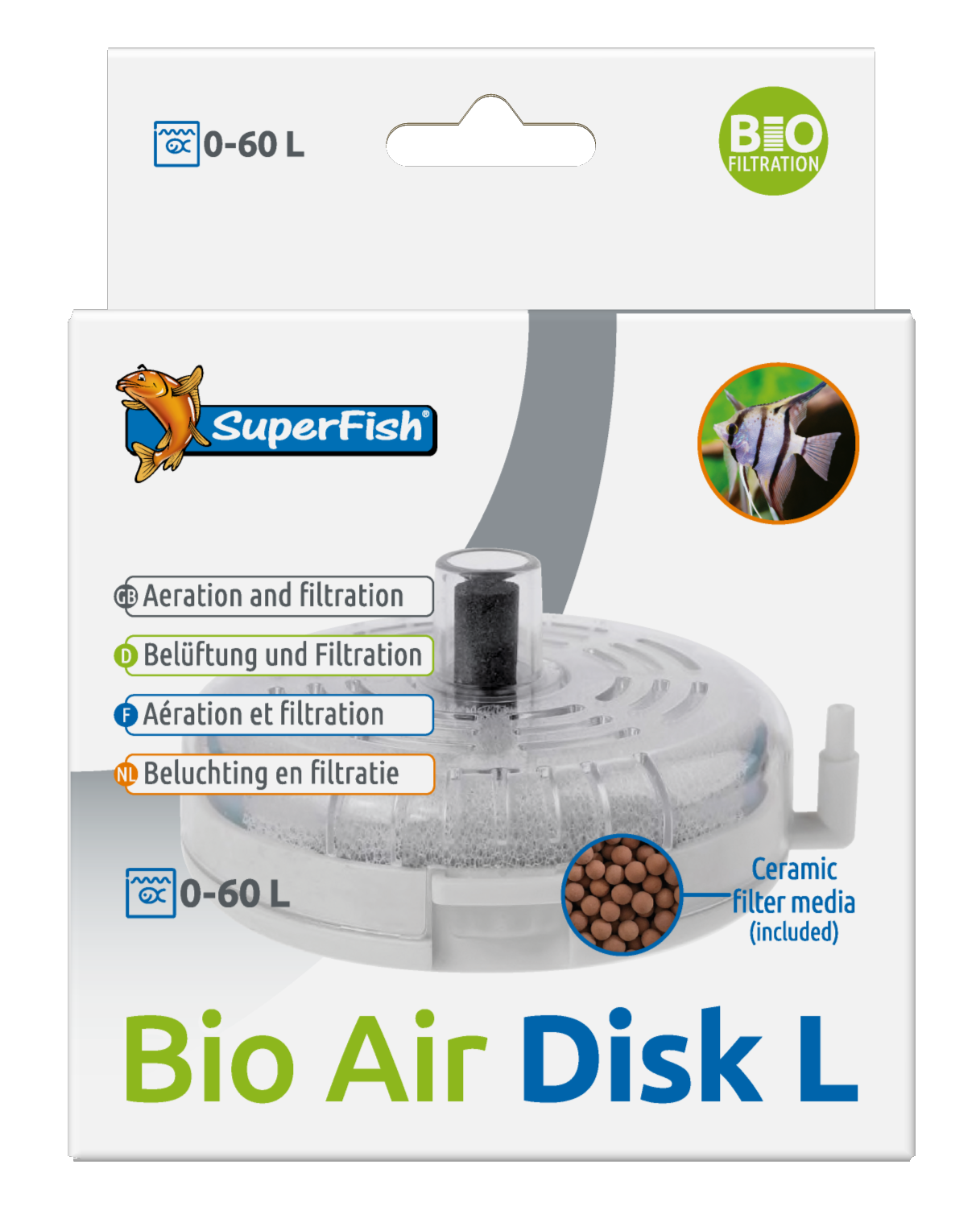 - Bio Air Disk L, geschikt voor aquaria tot 60 liter.