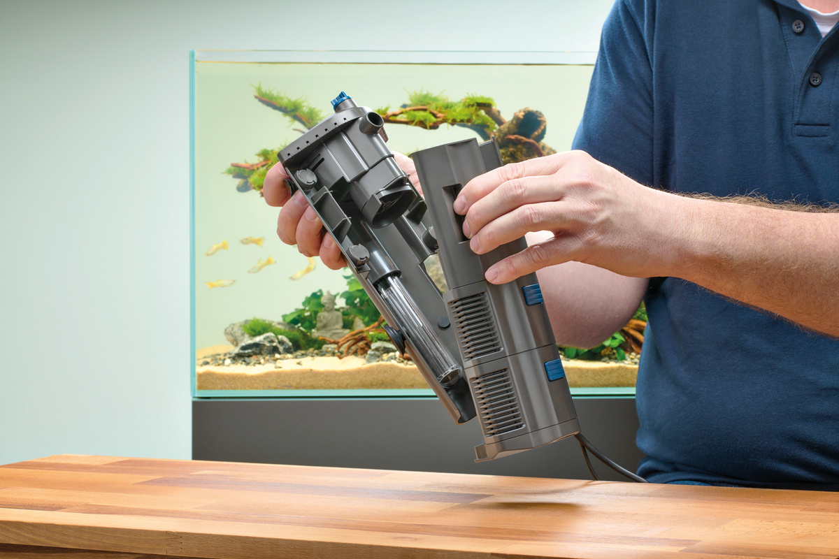 Het BioPlus 50 aquarium hoek binnenfilter reinigt het water in aquaria met een volume tot 50 liter met een doorstroomsnelheid van 350 liter per uur. Geïntegreerde uitblaasmonden zorgen voor een gelijkmatige oppervlaktebeweging en voldoende zuurstofverrijking. Tegelijkertijd voorkomen ze de vorming van biofilm. De pomp werkt zeer stil en is zeer energiezuinig met een stroomverbruik van 5 watt. Hij heeft een compacte filtereenheid die gemakkelijk kan worden verwijderd om schoon te maken, terwijl de pompeenheid op zijn plaats blijft. Het grote volume van de filtersponzen zorgt voor een effectieve mechanische filtratie. Het filter kan eenvoudig in de hoek van het aquarium worden bevestigd met behulp van zuignappen. De HeatUp regelverwarming kan achteraf worden gemonteerd.