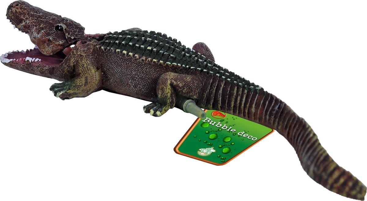 Bubbel ornament voor in het aquarium. Als u de slang van uw luchtpomp op deze decoratie aansluit gaat de bek van de krokodil open en dicht en komen er belletjes uit.