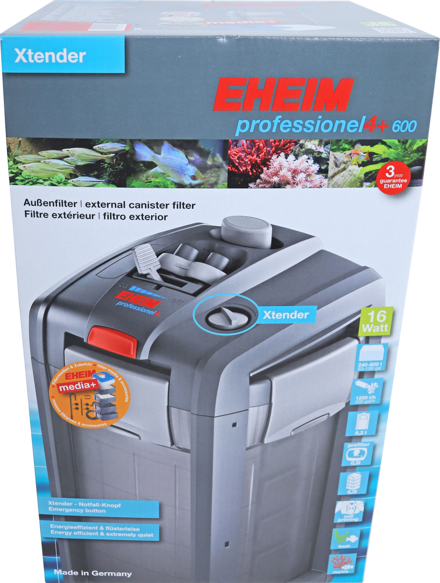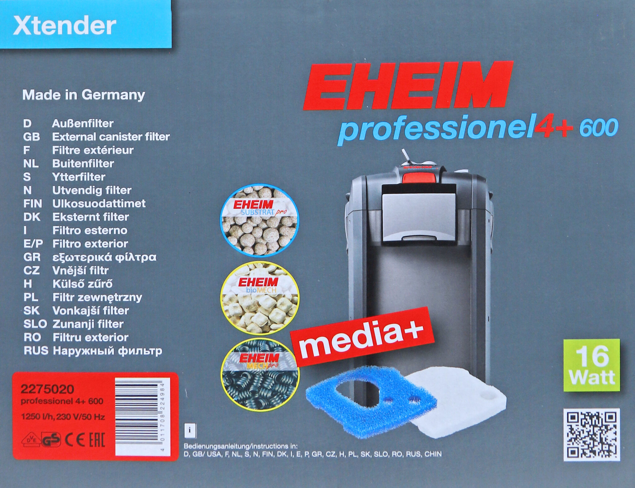 EHEIM Professional 4+ 600 Aquaria tot ca. 240-600 liter. Pompcapaciteit 1250 l/h. Stroomverbruik 16 Watt. Art. nr. 2275020.
