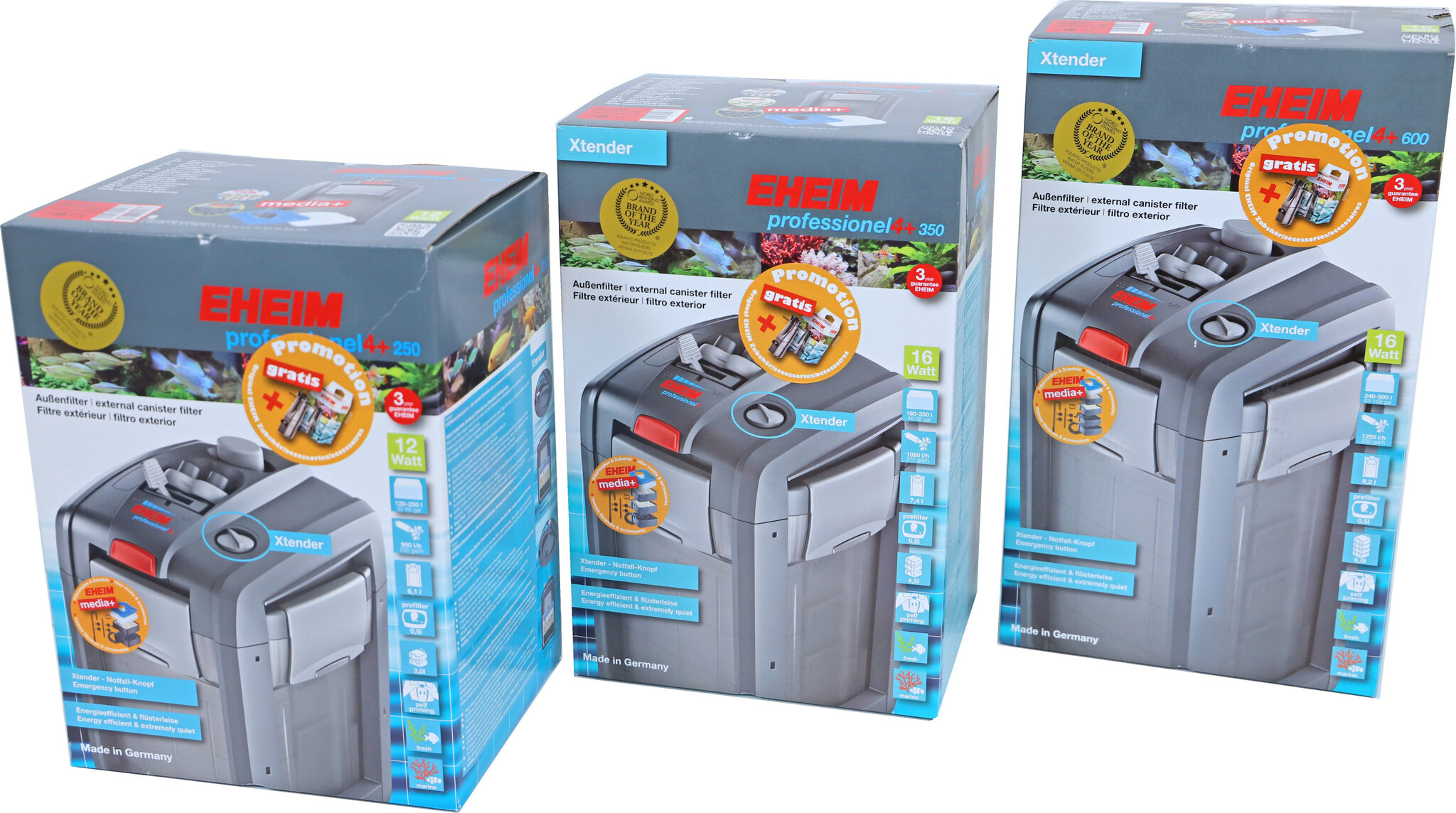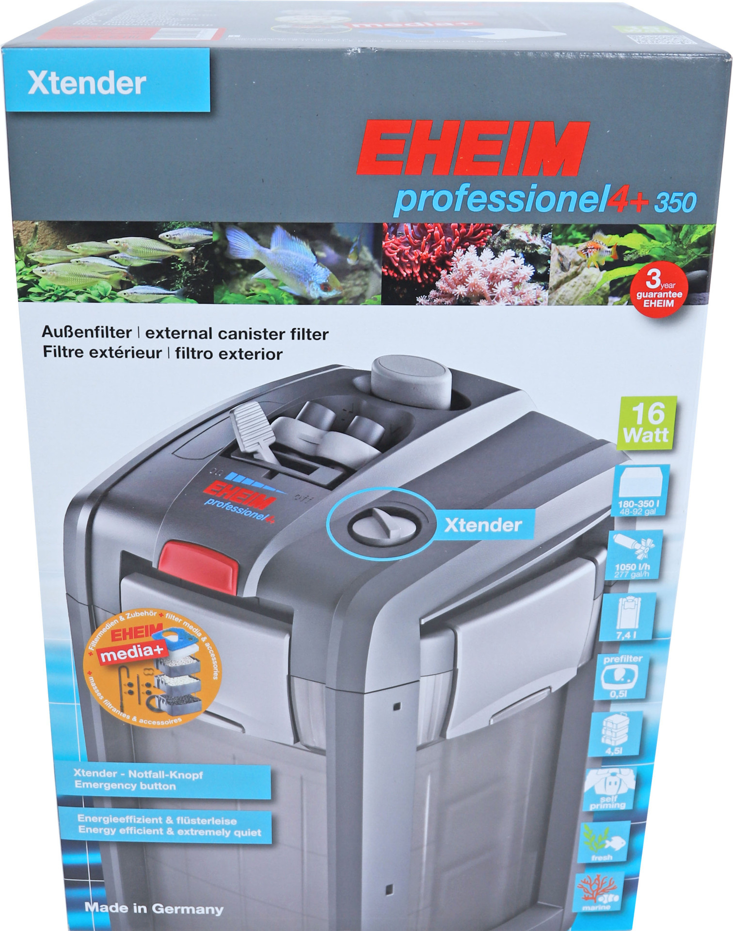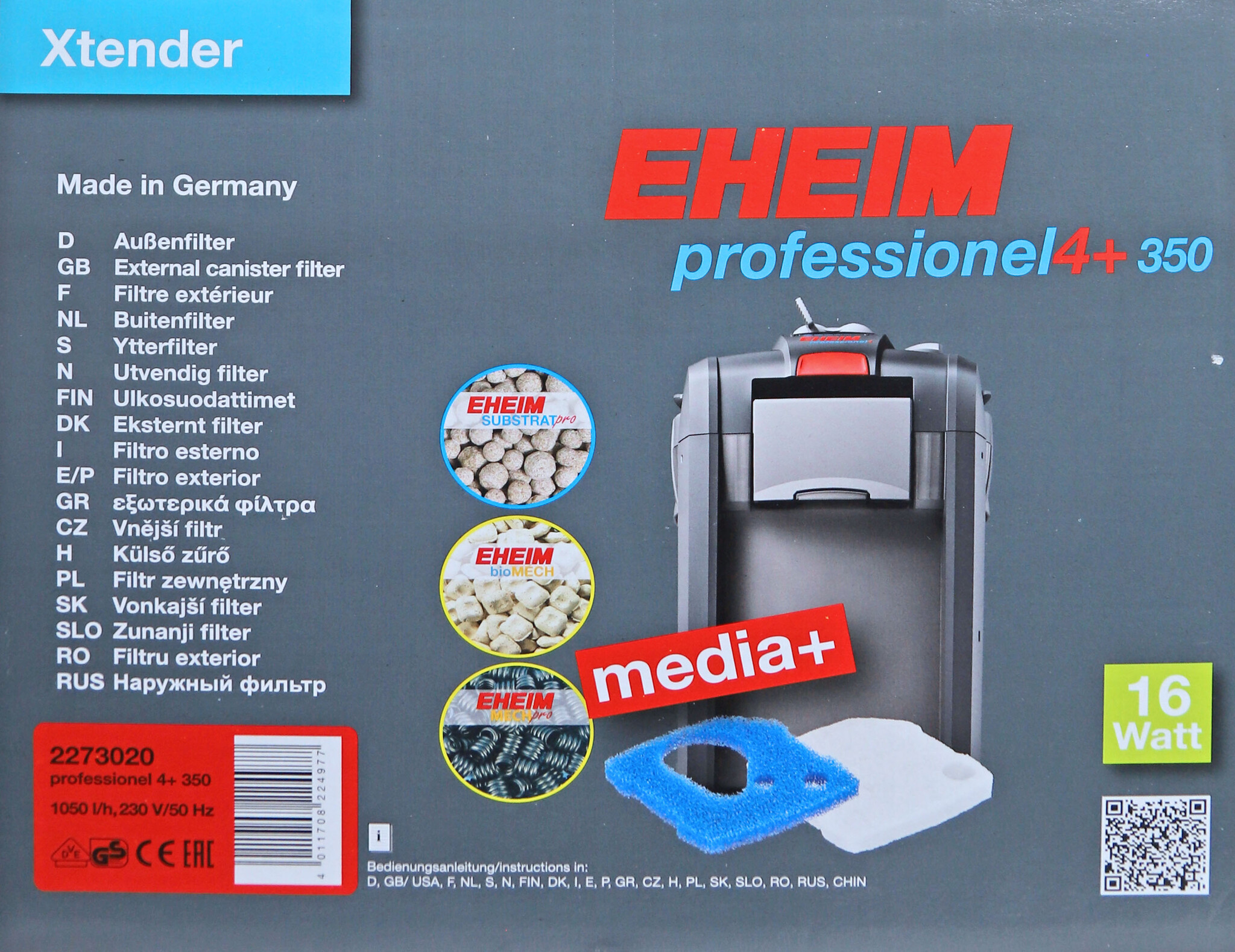 EHEIM Professional 4+ 350 Aquaria tot ca. 180-350 liter. Pompcapaciteit 1050 l/h. Stroomverbruik 16 Watt. Art. nr. 2273020.