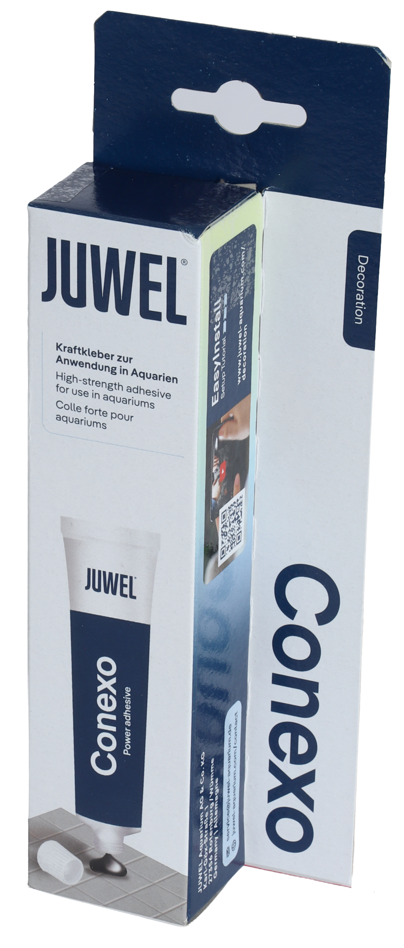 Juwel Conexo is een extreem sterk klevende hybridelijm die speciaal ontwikkeld is voor het verlijmen van kunststoffen met glas. Conexo kan ook worden aangebracht op een natte ondergrond en zelfs onder water. Wij raden Juwel Conexo vooral aan voor het aanbrengen van achterwanden en het bevestigen van de Juwel Skimmer en filters.
