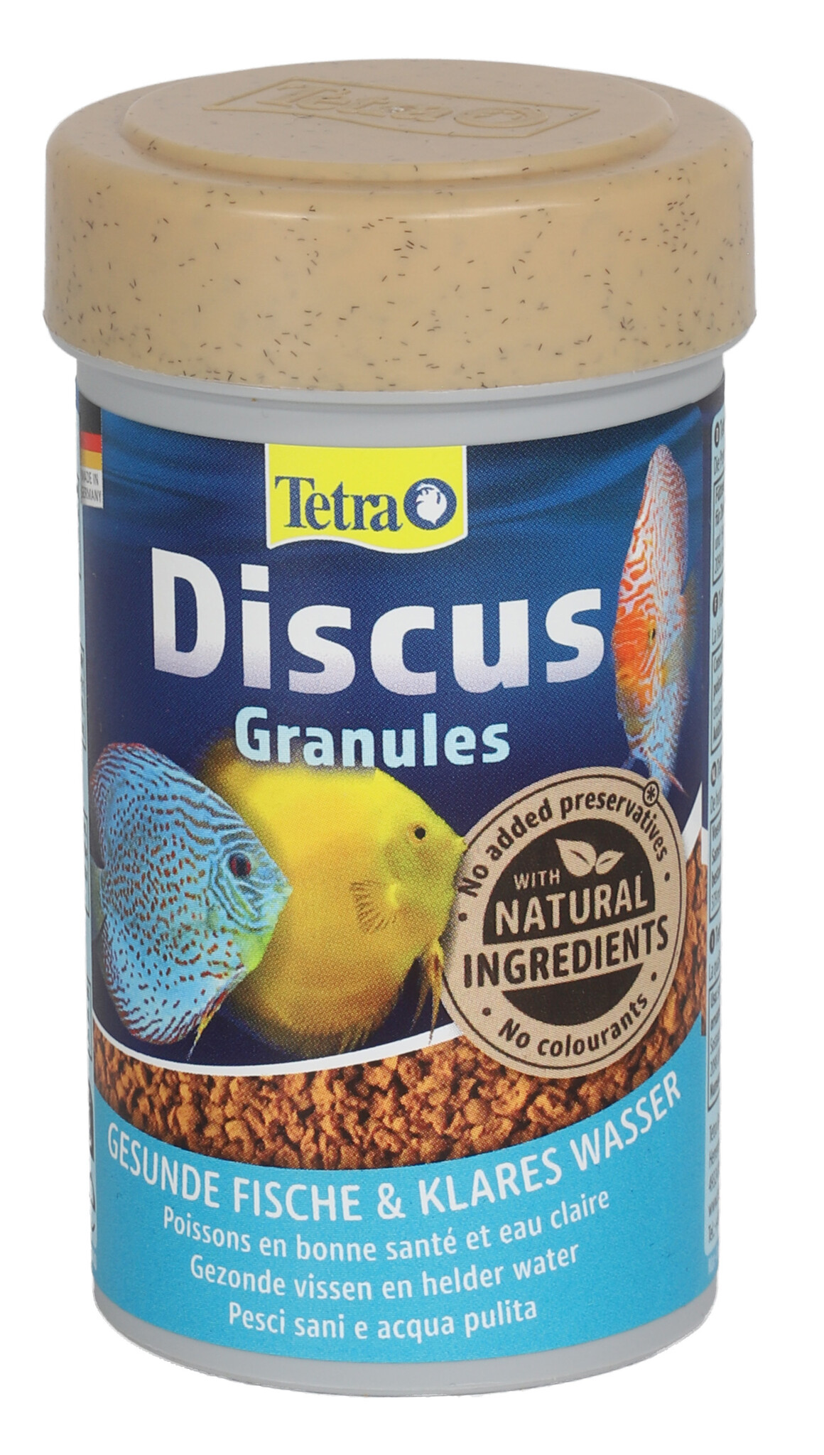 Hoofdvoeder in granulaatvorm. De kleur, de vorm en de samenstelling zijn optimaal aangepast aan de specifieke voedselbehoeften van discusvissen. Bevat alle vitale voedingsstoffen, vitaminen en spoorelementen. Het langzaam zinkend voeder is uitstekend aangepast aan de specifieke eetgewoonten van de discusvis. In tegenstelling tot ingevroren voeder is er geen gevaar voor ziekten door ziektekiemen. Stabiele vitamine C zorgt voor een verhoogd weerstandsvermogen, bevordert een gezonde groei en voorkomt voedings gerelateerde gebreken. Bevordert het welzijn, de natuurlijke kleurenpracht en de groei.