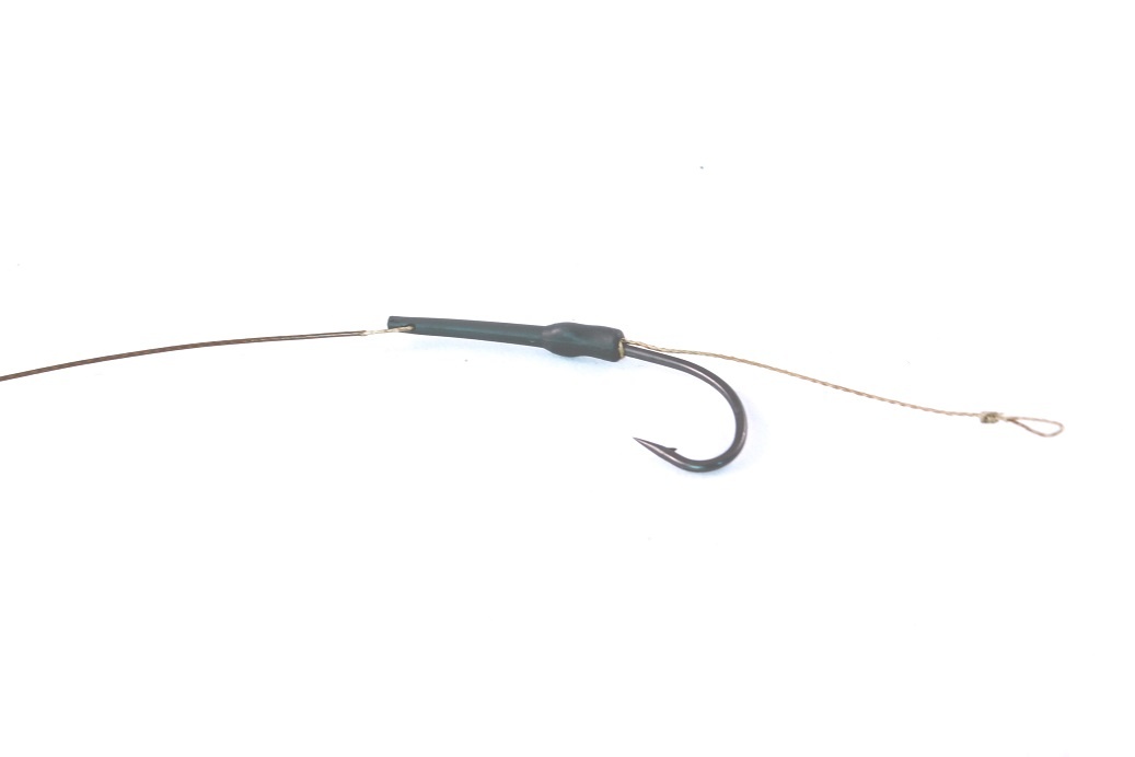 Via een naald haalden we in het verleden de lijn door deze tube naar voren. Op deze manier wordt de haaksteel flink verlengt en draait deze dus veel sneller in. PB Products heeft nu dit krimpkous model in een aligner weten om te toveren. Kant en klaar, waarbij de onderlijn automatisch naar voren wordt doorgevoerd. Op deze manier is een naald niet meer nodig. De haakt draait mooi en snel in. Dit model aligner is ook in X-stiff versie te verkrijgen.