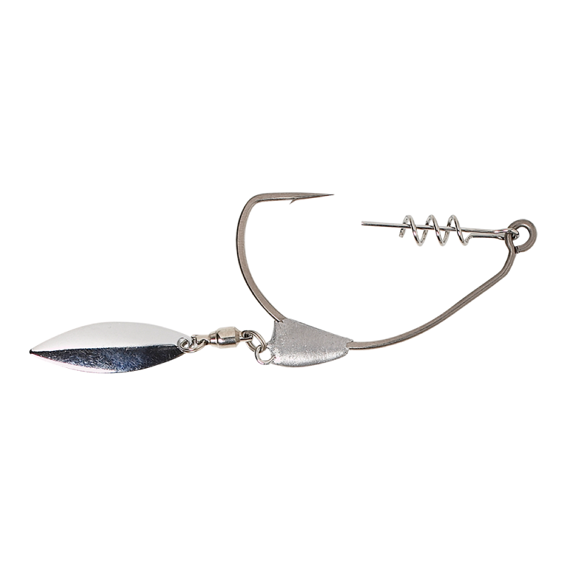 Extreme wide gape single hooks, with Cork screw, belly weight and underspin Blade! Perfect for weedless rigging our Real eels, and numerous shads. The belly weight balances the loose body lures perfect and the Underspin blade rotates and send out flash. The long and strong cork screw, will hold your soft lure in place perfect and will make the rig last for many headshaking hookups! These ultra sharp wide gape hooks enables you to fish straight thru snags reeds and lily pads!