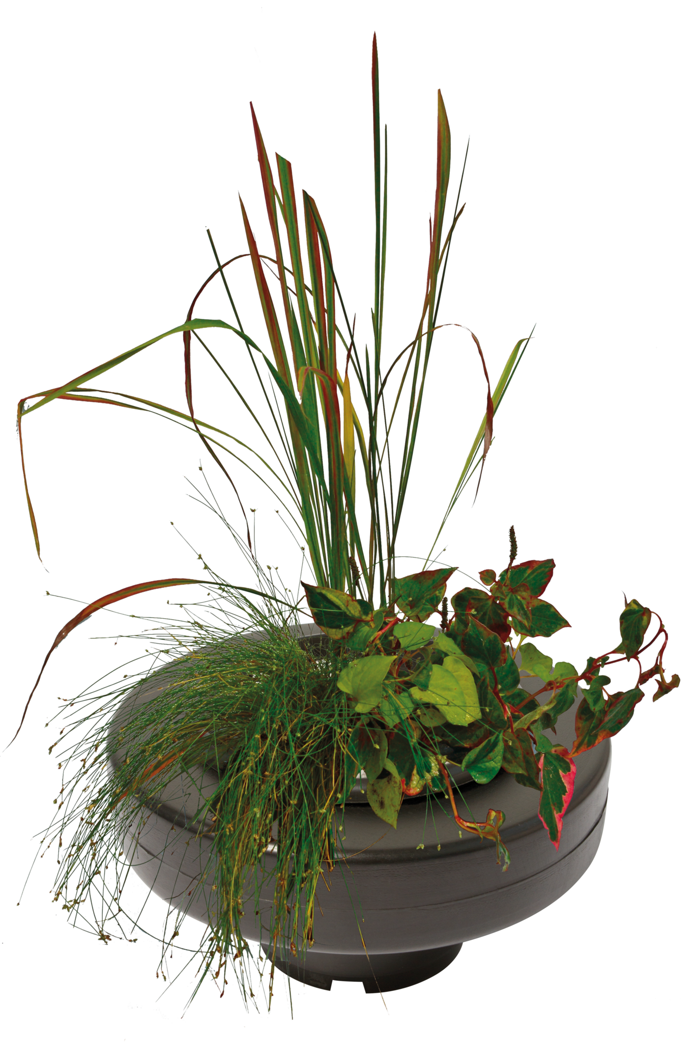 Decoratieve drijvende plantenmand voor in de vijver. Vul de drijvende mand met substraat en planten en plaats deze in de vijver.