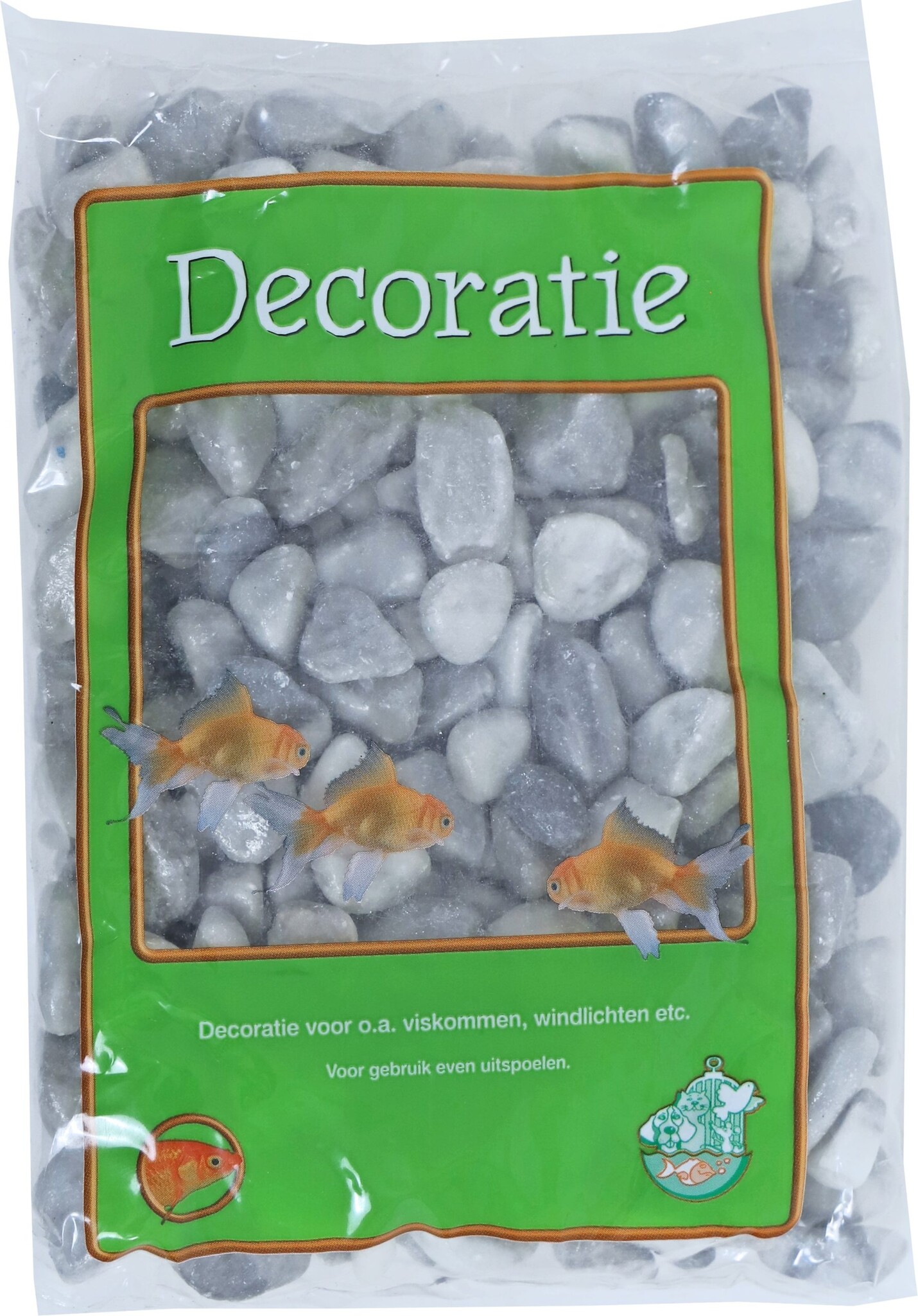 Glanskiezel bardiglio een decoratieve bodembedekker voor viskommen, kleine en grote aquaria en ook zeer geschikt als decoratie in bijvoorbeeld bloempotten. Veilig voor vis en plant. 1 kg per verpakking.