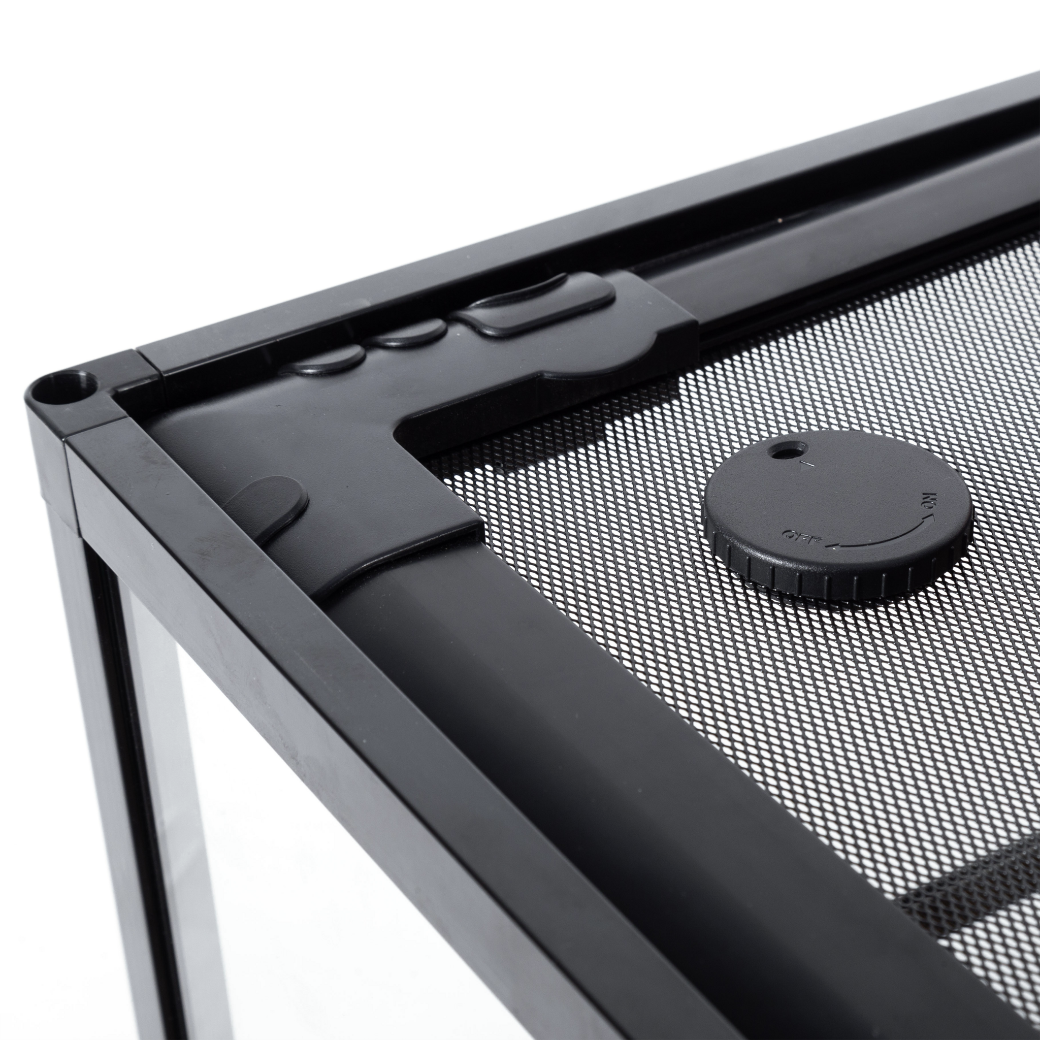 - Dit handige terrarium is ontwikkeld door specialisten en voorzien van slimme ontwerpen zoals een deur met slot aan de voorzijde, diverse doorvoermogelijkheden voor kabels en slangen en een volledig afneembare bovenkant voor gemakkelijke toegang tijdens het inrichten of onderhoud.