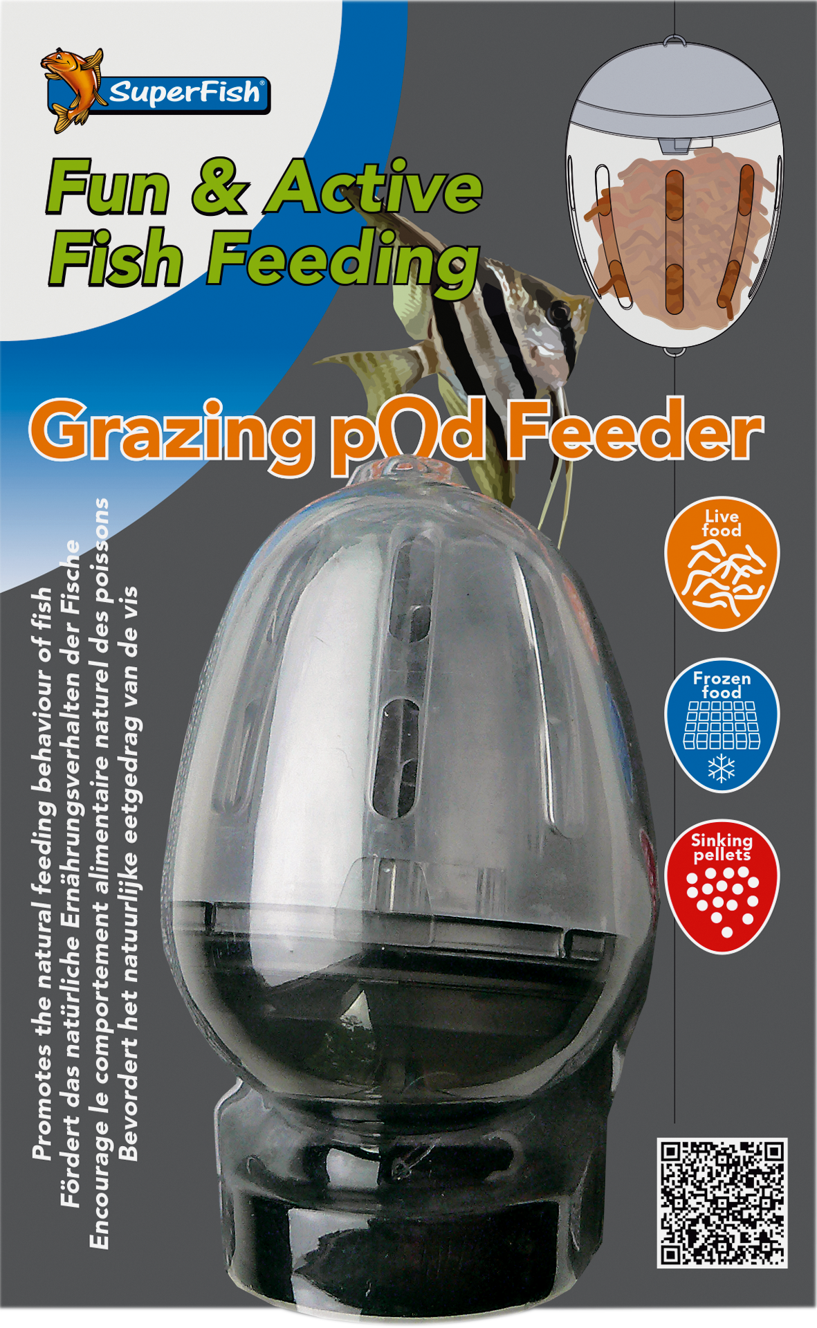 De Grazing Pod Feeder stimuleert het natuurlijk gedrag van vissen om te “jagen” op voedsel.