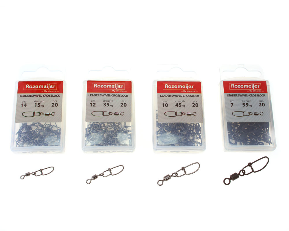 Topkwaliteit leader swivel-crosslocks. Verkrijgbaar in de treksterktes 15, 35, 45 en 55 kg. Speel op safe, en neem ze van Rozemeijer. Ze stellen niemand teleur! 20 stuks in een handig opbergdoosje.