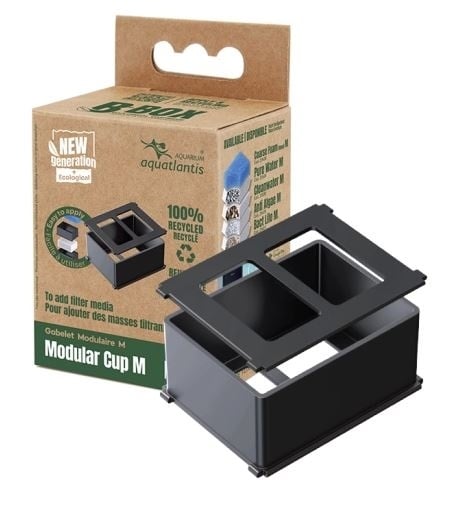Door de modulaire configuratie van het B-Box filtersysteem is het mogelijk om een extra modulaire cup (maat M) toe te voegen aan de Biobox Mini filters, afhankelijk van de behoefte van het aquariumwater (let op: een extra filterpatroon kan resulteren in een verlaging van de doorstroomsnelheid).