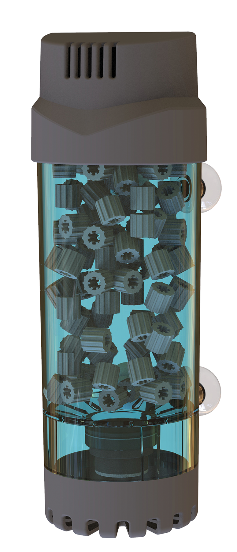 Lucht aangedreven bewegend bed filter met het hoogste rendement aan aerobe bacteriën, zorgt voor schoon en gezond aquariumwater! • Aanbevolen als extra filter om de biologische filtercapaciteit in dichtbevolkte aquaria te vergroten • Hoge zuurstofniveaus door beluchting, verbeteren de groei van aerobe bacteriën, wat zorgt voor een efficiëntere nitrificatie • Aerobe bacteriën hechten zich aan de micro filter- media en zetten het schadelijke ammoniak (NH3) om in nitriet (NO2) en nitraat (NO3) • Het filtermedia is zelfreinigend, onderhoud van het filter is minimaal • Geen mechanische delen, waardoor het 100% veilig is voor de kleinste aquariumbewoners • Voorzien van een luchtsteen, wat zorgt voor een betere waterstroming door het filter • Eenvoudig aan te sluiten op een luchtpomp.
