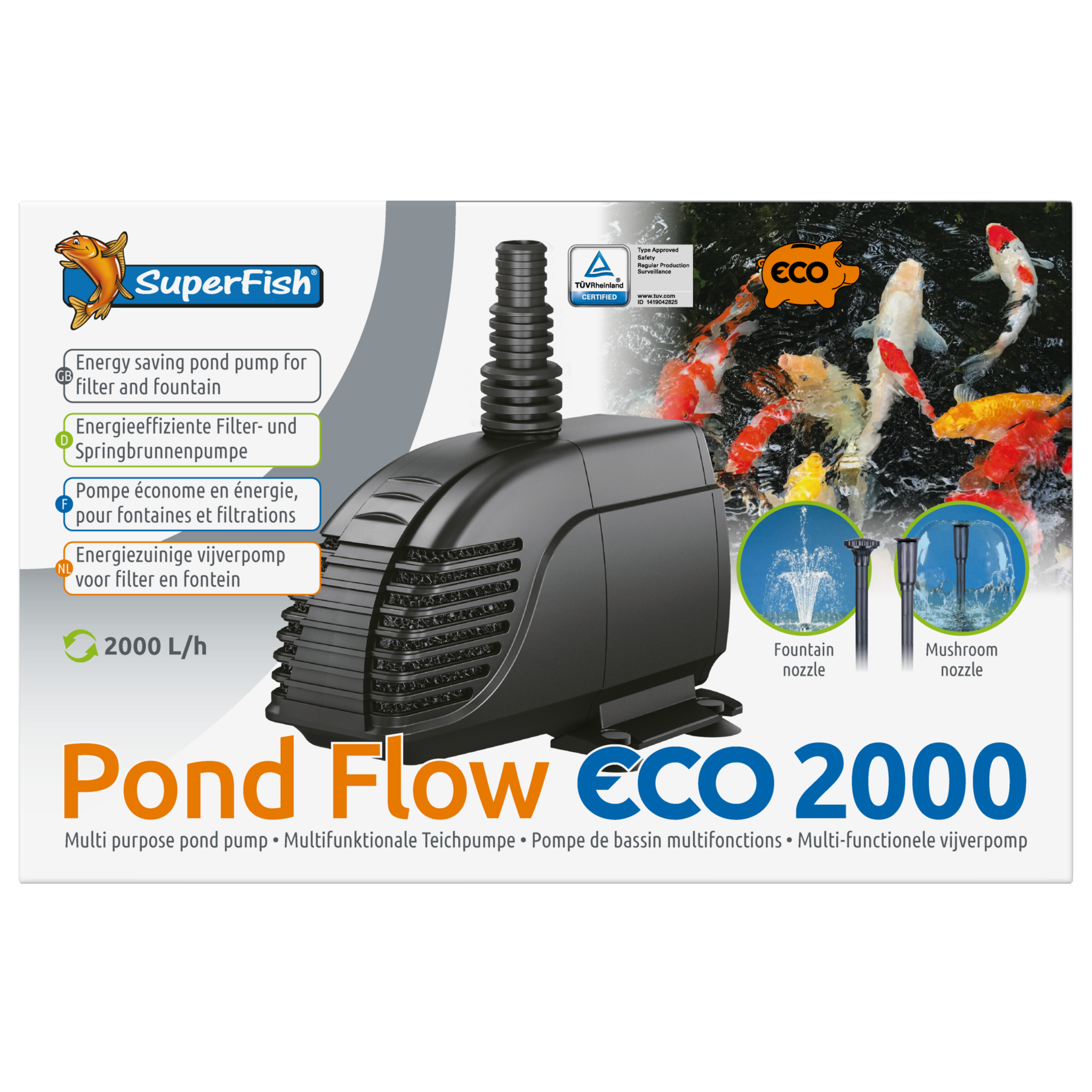 - Pompcapaciteit 2000 L/h, verbruik 25W, Max. opvoerhoogte 1,9m, uitlaat 20/25/32mm, 10 meter snoer, TUV-keuring en 2 jaar garantie, afmeting L x B x H 17,4 x 8,5 x 10,4 cm.