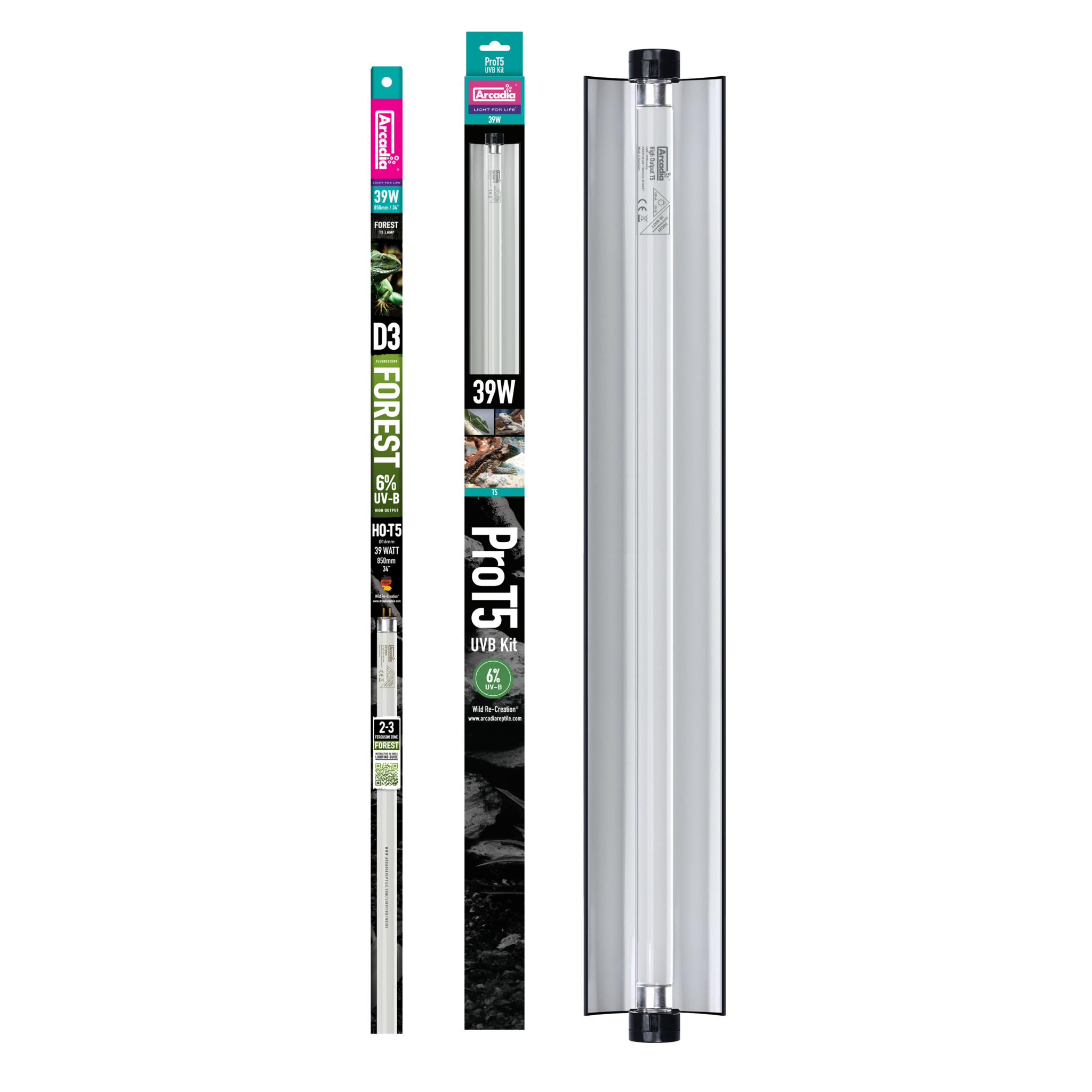 - T5 is de beste methode om UV-straling aan te bieden aan uw reptielen. Met de efficiënte Arcadia T5 lampen voorziet u uw dieren 12 maanden van UV-B en u kunt tot 10 van deze units aan elkaar koppelen door middel van de bijgeleverde link kabel.