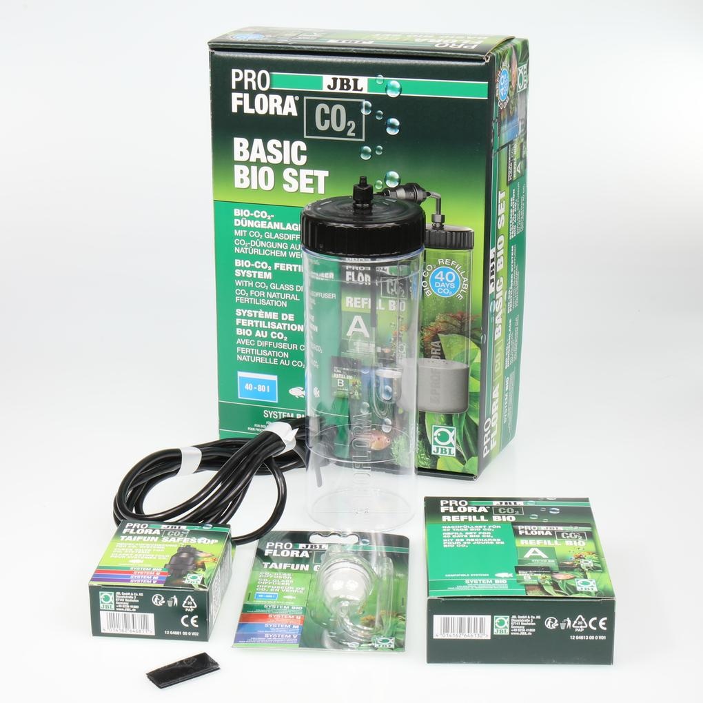 - Inhoud: kant-en-klare Bio-CO2 bemestingsinstallatie voor zoetwateraquariums van 40-80 l incl. reactievat, biocomponenten, 3m speciale CO2 slang, zuignap, terugloopventiel en glazen diffuser.