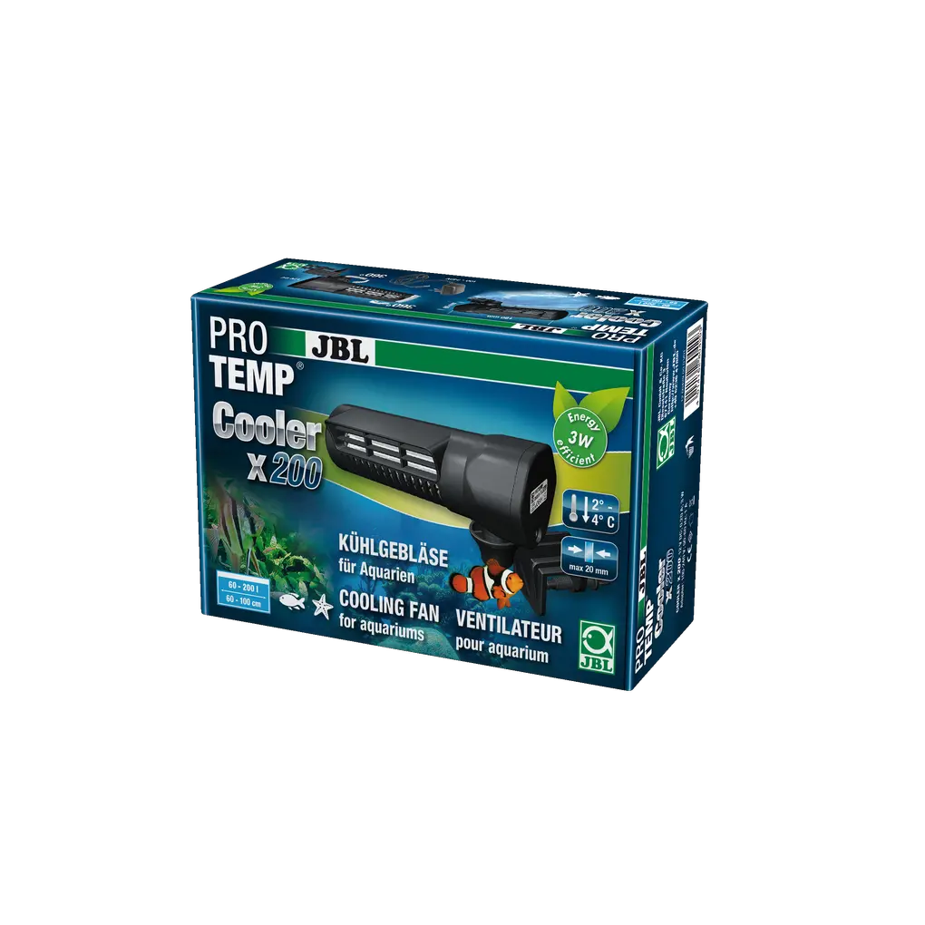 - Waterkoeling door luchtstroom aan het wateroppervlak = verdampingskoelte. Uit te breiden met de JBL temperatuurregelaar CoolControl. Generatie 2: zachter dankzij de verbeterde plaatsing van het schoepenrad.