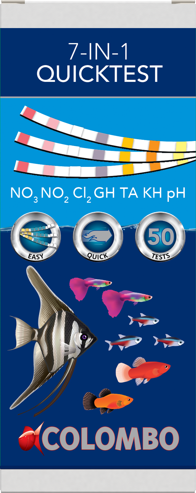 De Quicktest Teststrips voor zoetwater bevat 50 teststrips waarmee snel en handig de 7 belangrijkste waardes van het aquariumwater worden gemeten. De Quicktest test de volgende waardes: pH - (Zuurgraad), KH-(Karbonaathardheid), GH - (Totale hardheid), NO2 - (Nitriet) - NO3 - (Nitraat), CL - (Chloor), TA (Totale alkaliniteit).