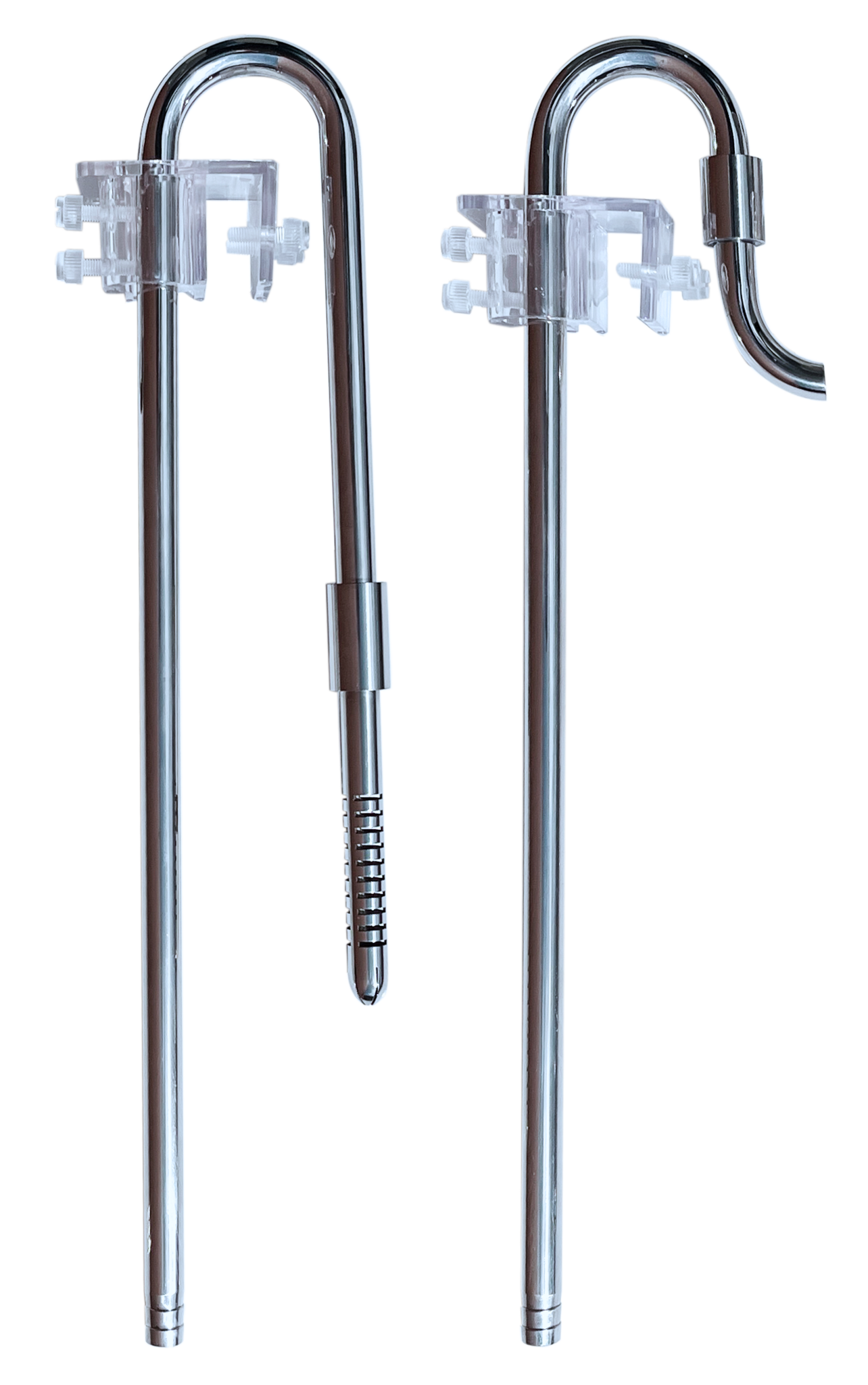 RVS in- en uitstroompijp (lily pipe)voor het aquarium, stijlvol, robuust en onbreekbaar en daarom veel handiger in gebruik als glazen lily pipes. Door de brede zeef onderaan de toevoerleiding kan water over een groot oppervlak worden aangezogen en naar het externe filter worden afgevoerd. De uitlaatpijp zorgt voor een goede verdeling en circulatie van het retourwater naar het aquarium. Compleet geleverd met bevestigingsclips.