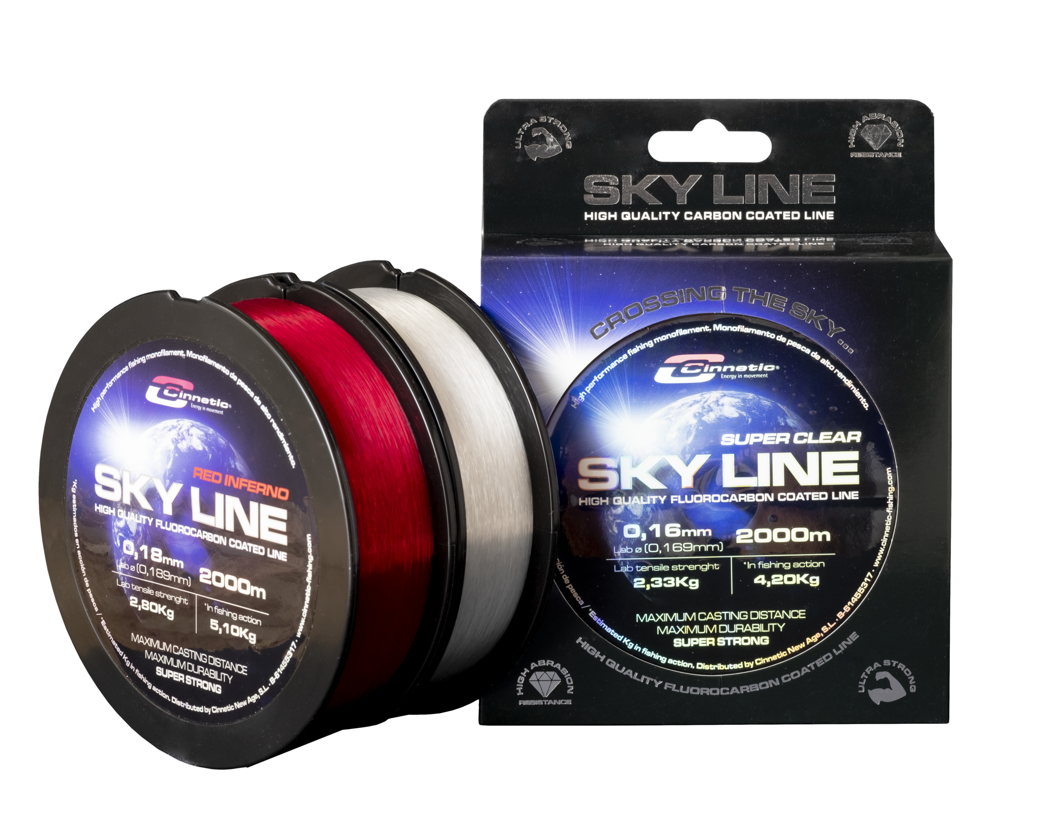 Fantastic multi polymer with a great strength resistance. Its smooth surface is protected by a carbon coating film which increases its abrasion resistance and DURABILITY, key features when facing a competition with enough success guarantees. The SUPER CLEAR finish gives the line an extra feature thanks to its fluorocarbon coating, which is less perceptible into the water.