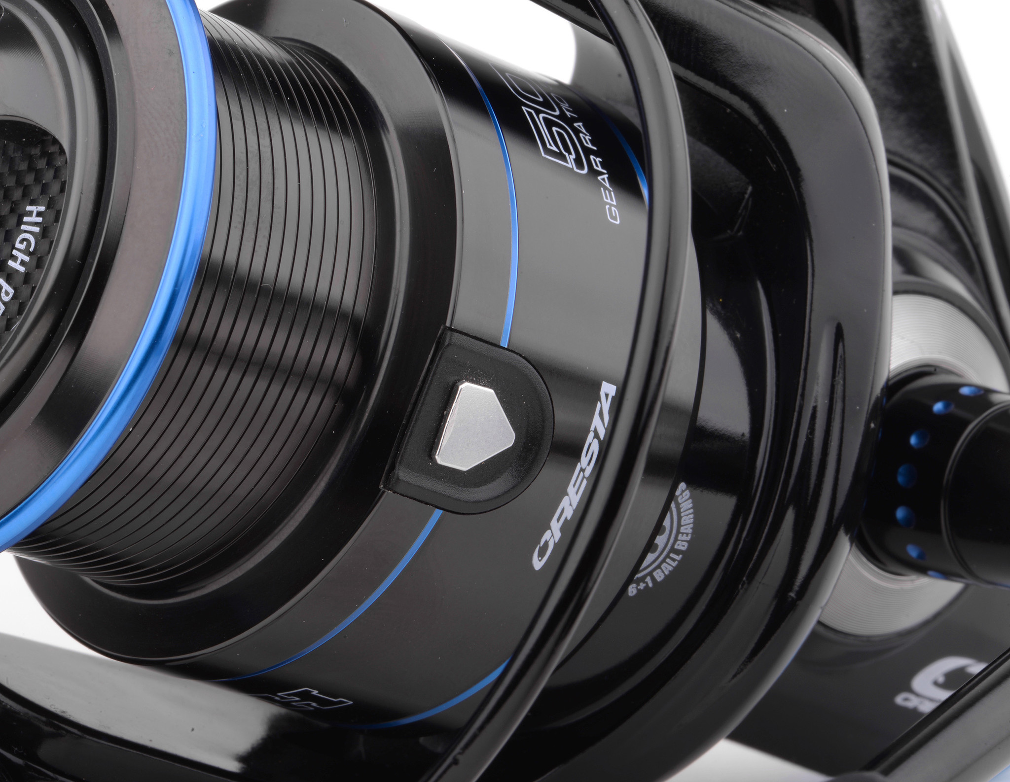 Deze robuuste, maar elegant ogende molen is afgestemd op de feedervisserij. Het kunststof molen huis en de holle beugel houden het gewicht beperkt. Het S-curve mechanisme en de 6+1 lagers laten het binnenwerk zeer soepel draaien. De semi ondiepe spoel voorkomt onnodige backing. Het fijn instelbare