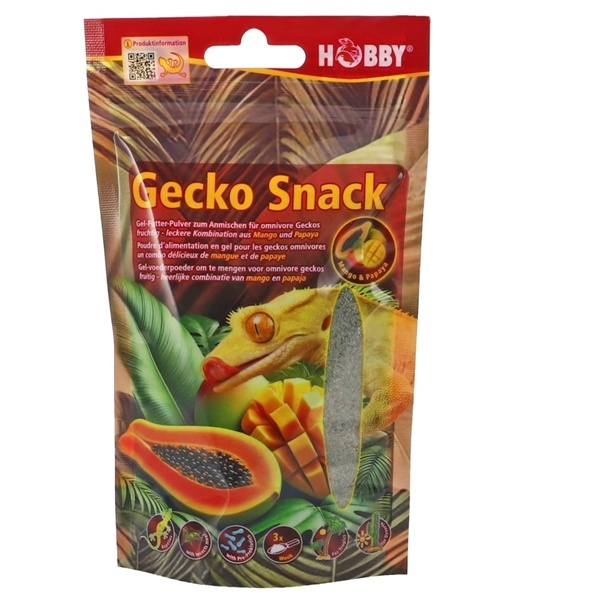 Hobby Terrano Gecko Snack is een innovatief gelvoederpoeder voor een snelle en eenvoudige zelfbereiding, wat zorgt voor stressvrij voeden en gezonde voeding voor de dieren. De heerlijke combinatie van banaan en ananas levert natuurlijke vitamines, reguleert de stofwisseling en ondersteunt de groei en ontwikkeling van de dieren. Hoogwaardige natuurlijke eiwitten uit insectenmeel en inbegrepen probiotica zorgen ook voor een optimale spijsvertering en ondersteunen de gezondheid van de gecko’s. De Gecko Snacks zijn ideaal als aanvulling op het basisdieet van omnivore gecko's en als smakelijke aanvulling op levend voedsel.