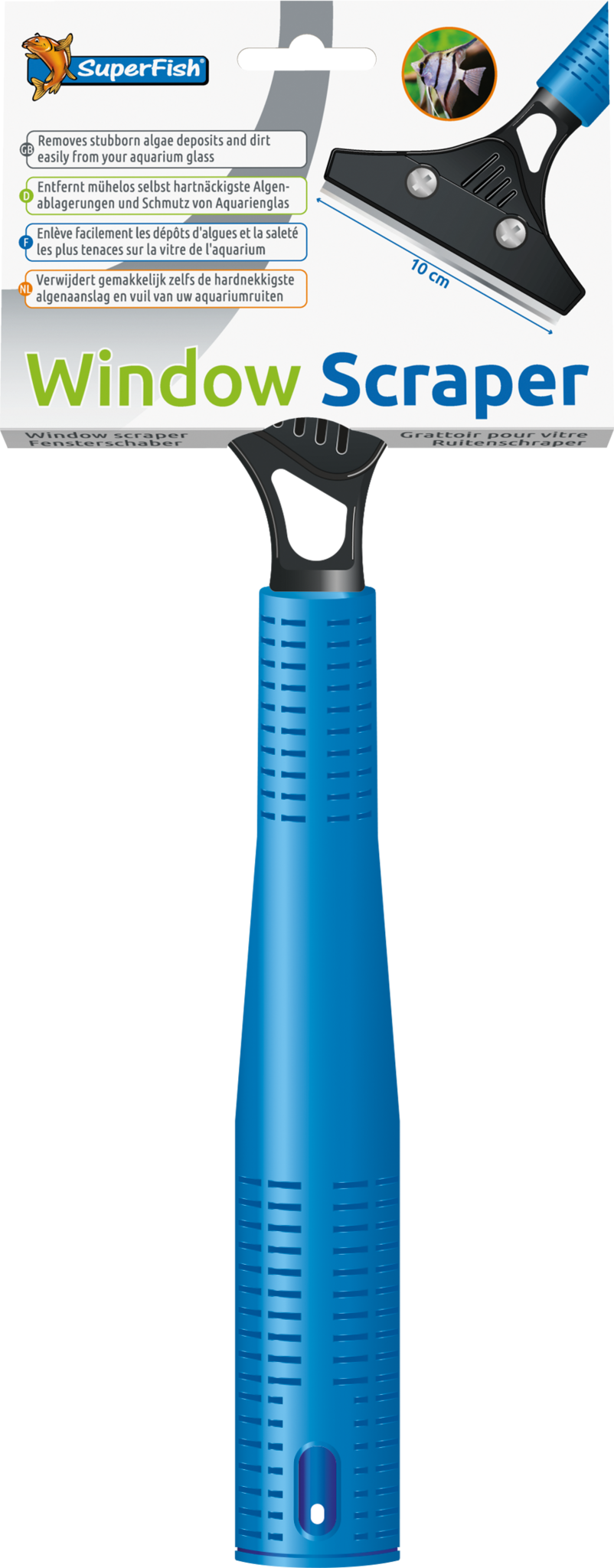 Verwijdert zelfs de hardnekkigste algenaanslag en vuil van uw aquariumruiten. Door de handige handgreep kunt u voldoende kracht zetten. Vervangingsmesjes voor de Superfish Window Cleaner zijn verkrijgbaar.